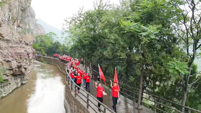 隨后,大家沿著紅飄帶來到了紅旗渠總干渠的咽喉工程——青年洞,通過聽講解、觀實(shí)物、看實(shí)景、走長渠等,切身實(shí)地感受紅旗渠精神的深刻內(nèi)涵。走在半個(gè)世紀(jì)前完工的紅旗渠邊,山壁上的一幅幅題字、一幕幕修渠場(chǎng)景次第呈現(xiàn),每個(gè)人都不禁感嘆先輩們“自力更生、艱苦創(chuàng)業(yè)、團(tuán)結(jié)協(xié)作、無私奉獻(xiàn)”的紅旗渠精神。通過實(shí)地的觀摩和學(xué)習(xí),大家真切地感受到了林州人民創(chuàng)業(yè)的艱苦,加深了對(duì)紅旗渠精神的認(rèn)識(shí)和理解,也更加堅(jiān)定了傳承和發(fā)揚(yáng)這一精神的信念。
