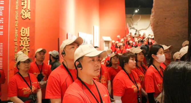 首先,大家來到本次活動(dòng)的第一站——紅旗渠紀(jì)念館,實(shí)地參觀了當(dāng)年修渠時(shí)留下的珍貴照片。在講解下,通過千年旱魔、太行豐碑、山河巨變、精神永恒五個(gè)展廳回顧了當(dāng)年的修渠歷程。一幅幅生動(dòng)的歷史照片記錄了林州百姓艱苦奮斗的堅(jiān)毅精神;一件件珍貴的修渠文物無聲地表達(dá)了林州百姓人定勝天的頑強(qiáng)意志,展現(xiàn)了黨帶領(lǐng)林州人民十年奮戰(zhàn)、改造河山的震撼場(chǎng)景,也唱響了紅旗渠的最強(qiáng)音。