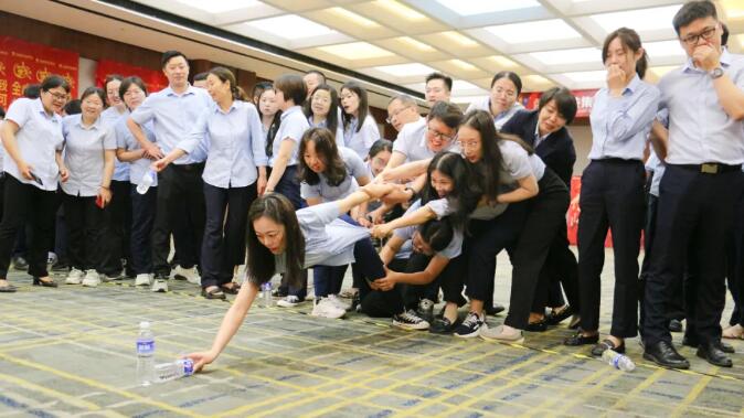 【勇創(chuàng)新高】環(huán)節(jié),主要內(nèi)容是計(jì)時(shí)30分鐘的水瓶挑戰(zhàn)。一聲哨響之后,各個(gè)戰(zhàn)隊(duì)立即展開智力和團(tuán)隊(duì)協(xié)作力的大比拼,一次次挑戰(zhàn)自我,一次次超越自我,在嘗試中不斷打開思維,開放心態(tài),學(xué)習(xí)更優(yōu)模式以期實(shí)現(xiàn)目標(biāo)。同時(shí)大家還能迅速找到自己的優(yōu)劣勢(shì),揚(yáng)長(zhǎng)避短,團(tuán)結(jié)協(xié)作,終發(fā)揮出的團(tuán)隊(duì)力量,達(dá)成各自隊(duì)伍的目標(biāo)。